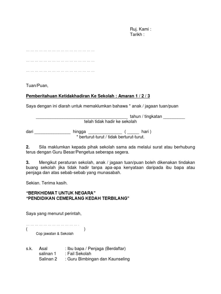 Contoh Surat Amaran Pertama Ponteng Sekolah