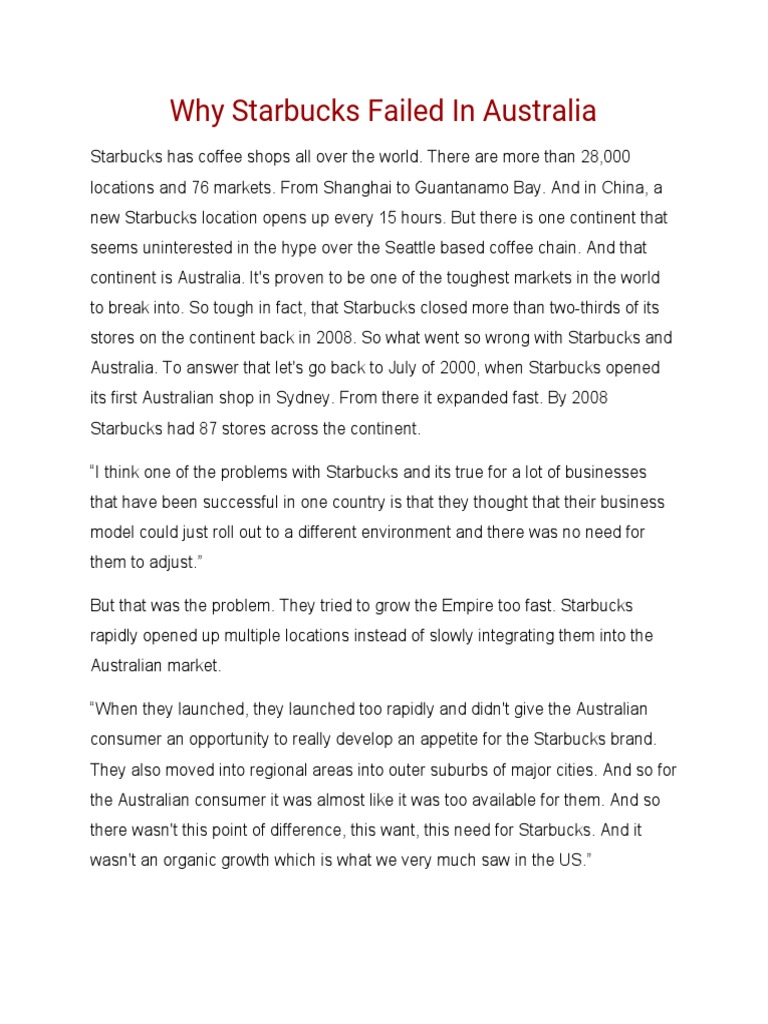 Why Starbucks Failed In Australia Pdf Starbucks Coffeehouse